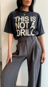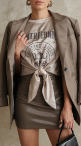 Band or graphic tees: Go for vintage-inspired logos or bold typography. Tuck them into high-waist wide-leg trousers for a modern balance.