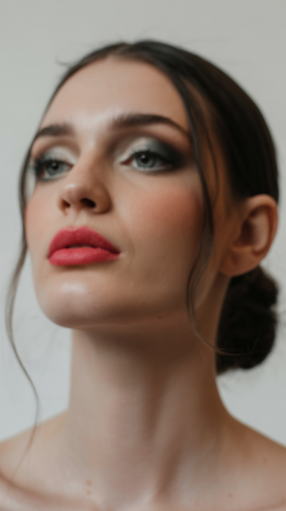 Keep makeup clean with one focal point: a blurred red lip or soft smoky eye.