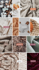 Winter: Wool, cashmere, velvet (warmth & luxury)