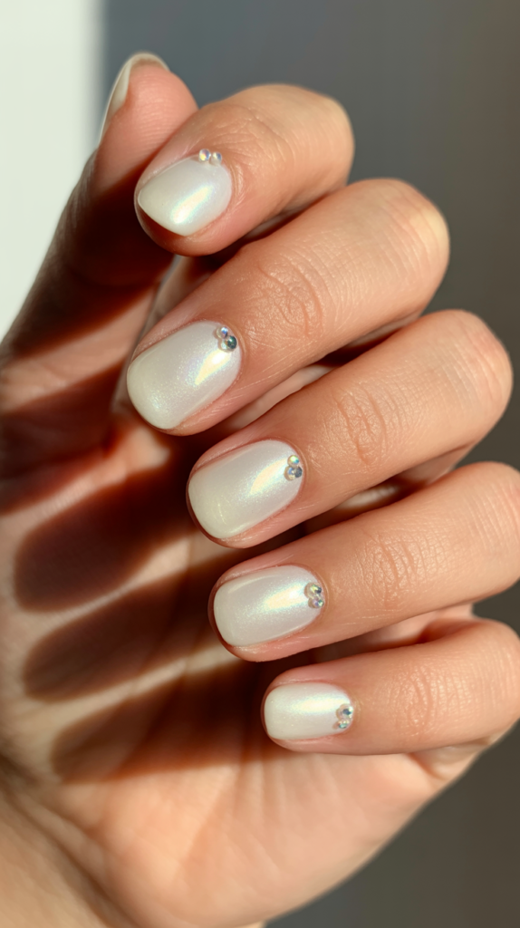 Sometimes, a little glam is necessary, even on short nails. Adding pearls or tiny crystals makes your nails feel expensive without going overboard.