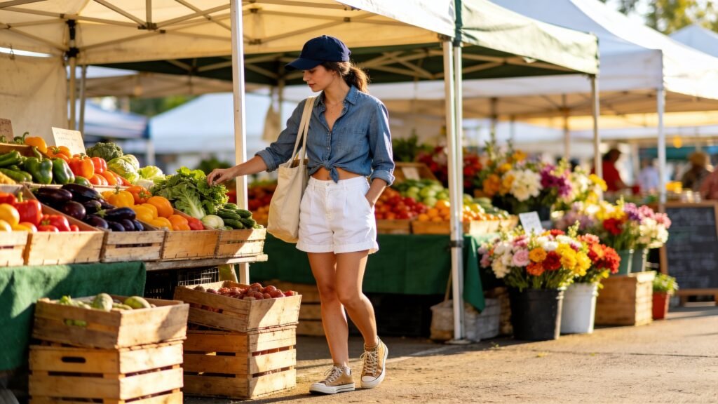 Sun-drenched tomatoes, live music, and that irresistible smell of fresh bread—yeah, Sunday farmers markets are the main character of your weekend. But let’s be honest: you want to look cute while you “casually” pick the perfect peaches. Good news—you don’t need a whole new wardrobe. You just need a few smart pieces you can mix, match, and rewear without trying too hard (because who wants to try too hard at 9 a.m.?).