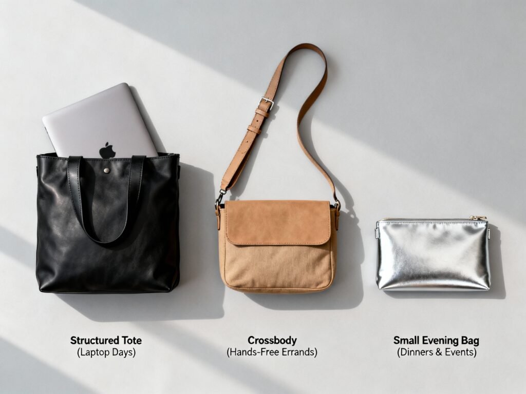 You can do a lot with three shoes (loafers, ankle boots, clean sneakers) and three bags (structured tote, crossbody, evening clutch). Add specialty pairs—heels or sandals—only if your lifestyle needs them. Streamlined options reduce decision fatigue.