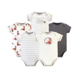 Organic cotton bodysuits and sleepers in cream, taupe, or forest green