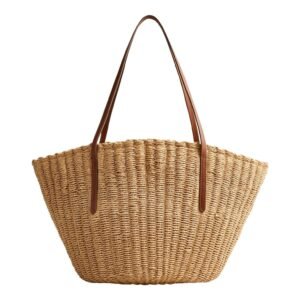 – Structured straw tote for beach gear.