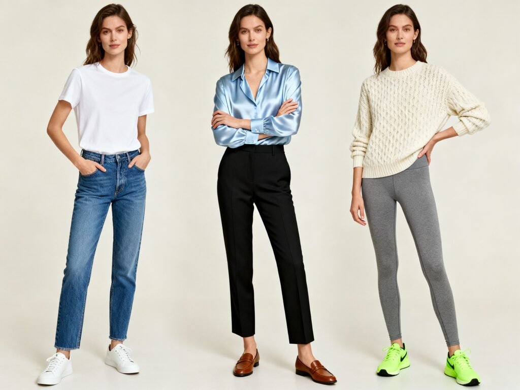 - Color palette: Pick 2–3 base colors (black, navy, tan) + 1–2 accents (olive, burgundy, blush).