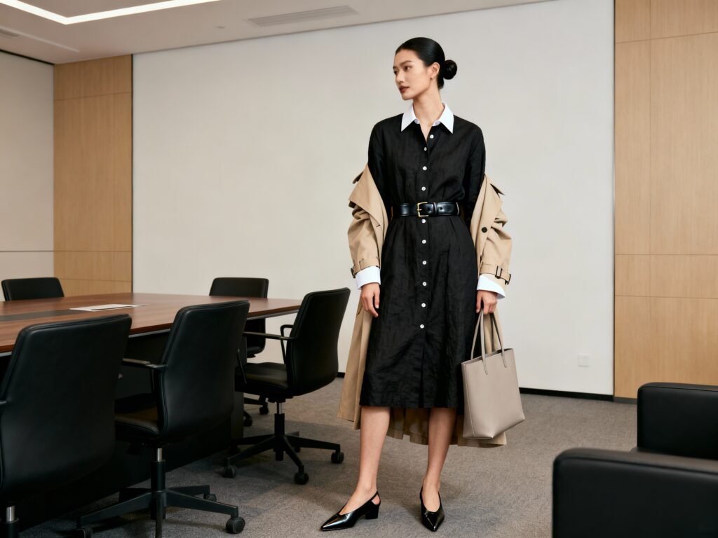 Corporate but chill? A linen shirt dress can look boardroom-ready if you sharpen the edges. Button it higher, define the waist, and lean into structure.