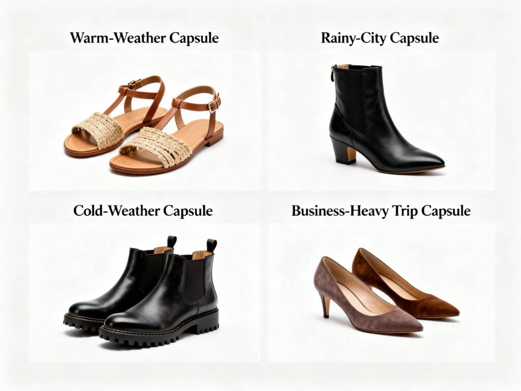 Let’s build a tiny shoe lineup that handles airports, cobblestones, boardrooms, and bistros without drama.
