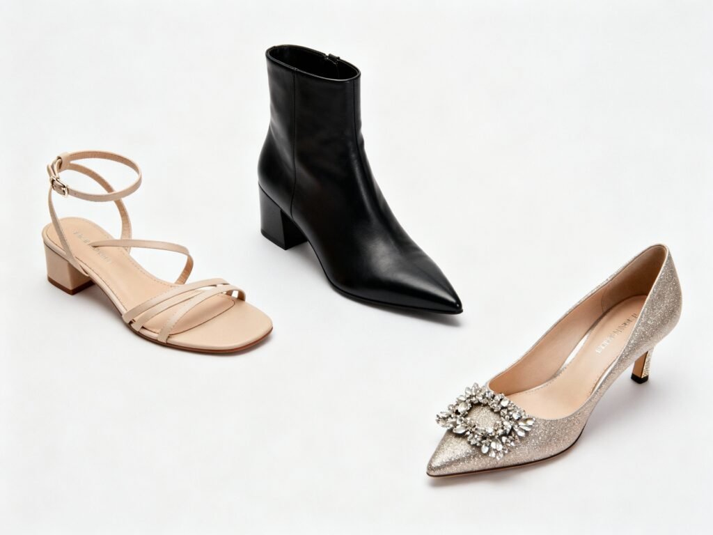 Build your capsule with one elegant walker, one dress-up option, and one smart wildcard. Keep colors tight, materials quality, and heels sensible.
