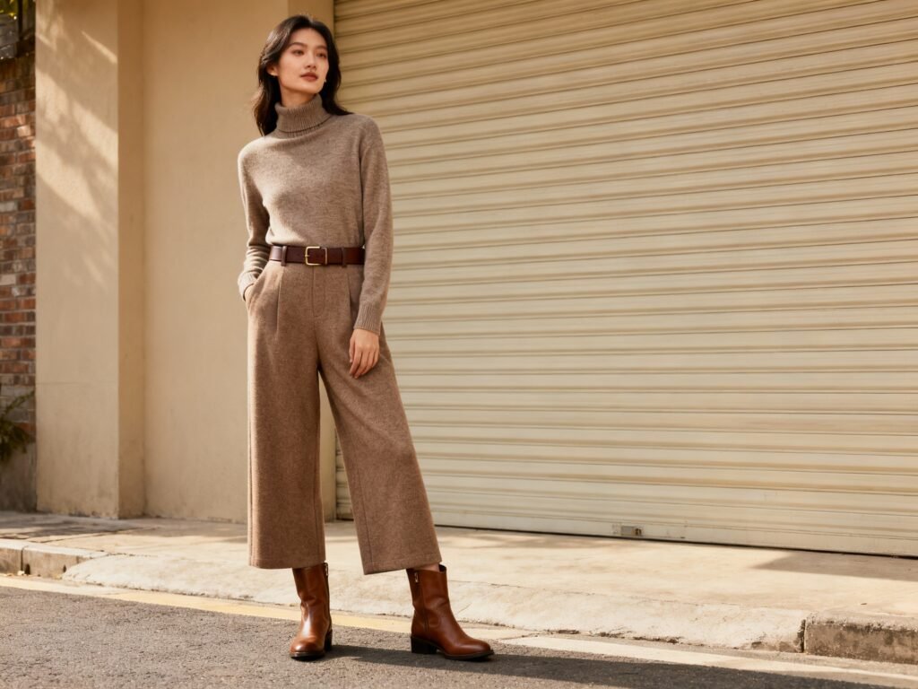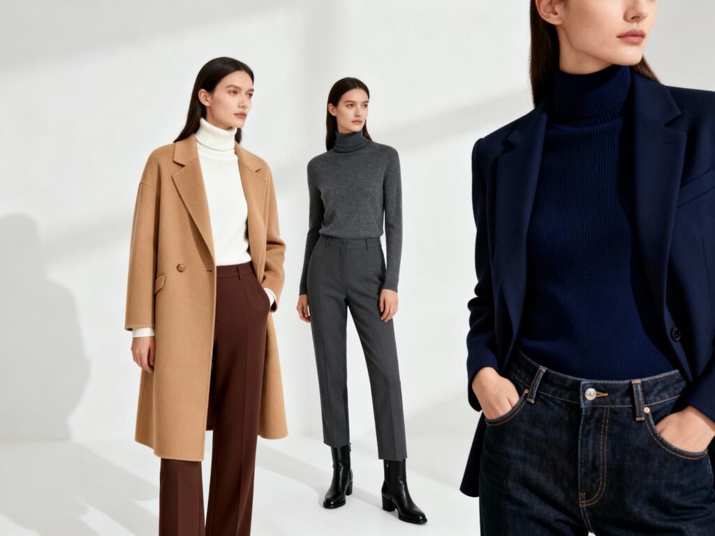 You can’t fake quiet luxury with scratchy knits. The material tells on you fast. Go for fibers that drape and breathe.