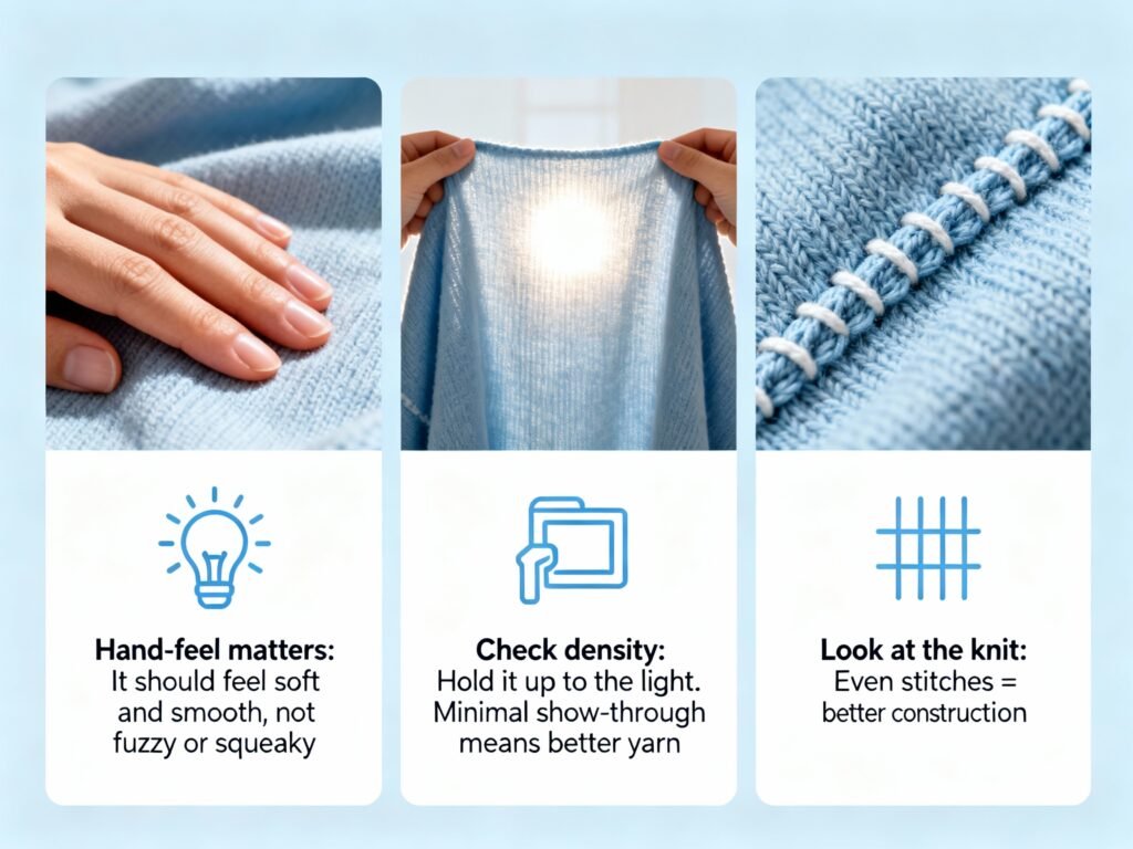 - Hand-feel matters: It should feel soft and smooth, not fuzzy or squeaky.