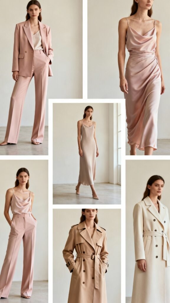 - Dresses: column, slip, or wrap styles in fluid fabrics.