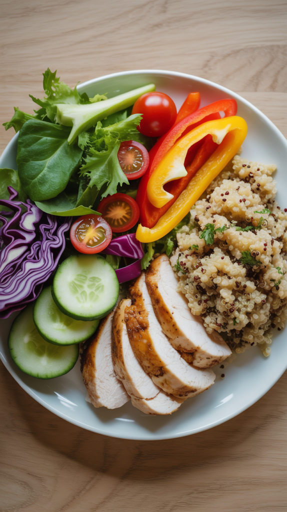 - Quarter plate: Smart carbs (rice, quinoa, potatoes, beans) or healthy fats (avocado, olive oil, nuts)