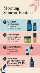 - Splurge: Vitamin C serums, retinoids with advanced delivery, growth factor/peptide complexes, elegant sunscreens you’ll actually wear.