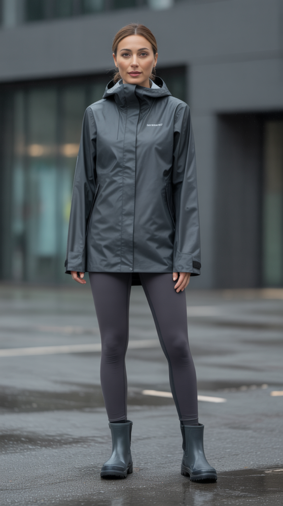 - All-black base layer + muted rain shell for a clean silhouette.