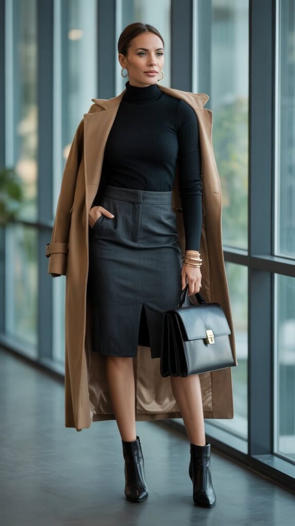 6. The Elevated Turtleneck + Pencil Skirt That Reads “Quiet Luxury”
