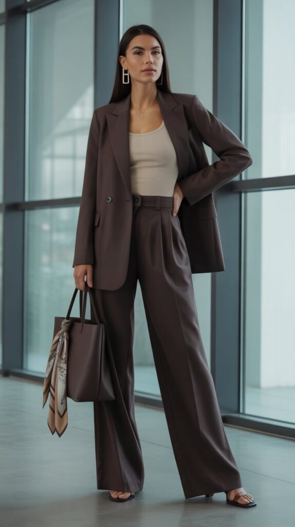 Best for creative pitches, agency visits, and big-picture brainstorms. Add a silk scarf tied to your tote for a quiet pop of personality.