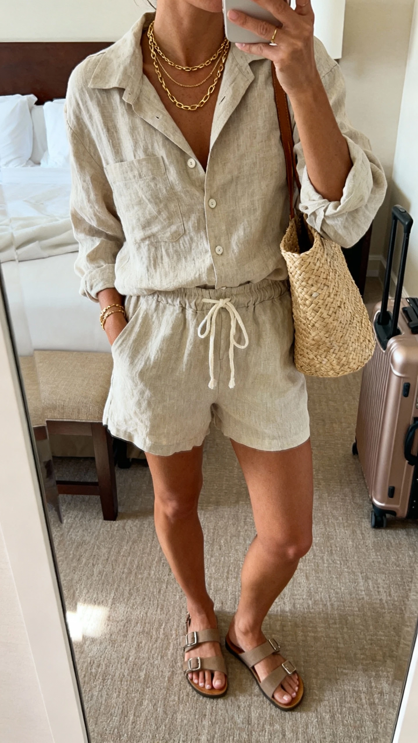 1. Resort-Ready Linen Set That Basically Plans Your Whole Day