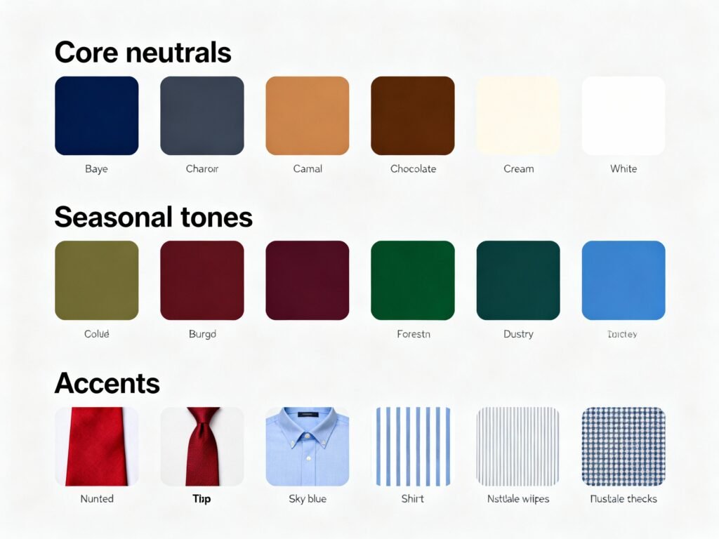 - Core neutrals: navy, charcoal, camel, chocolate, cream, white