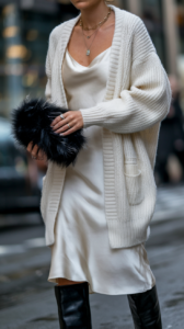 6. Cozy Cardigan + Slip Dress + Tall Boots