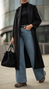 8. Longline Coat + Wide-Leg Jeans + Turtleneck