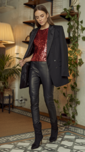 Okay, listen—Nashville loves a little sparkle. A sequin top with leather pants and a tailored blazer is your go-to for a night out downtown.