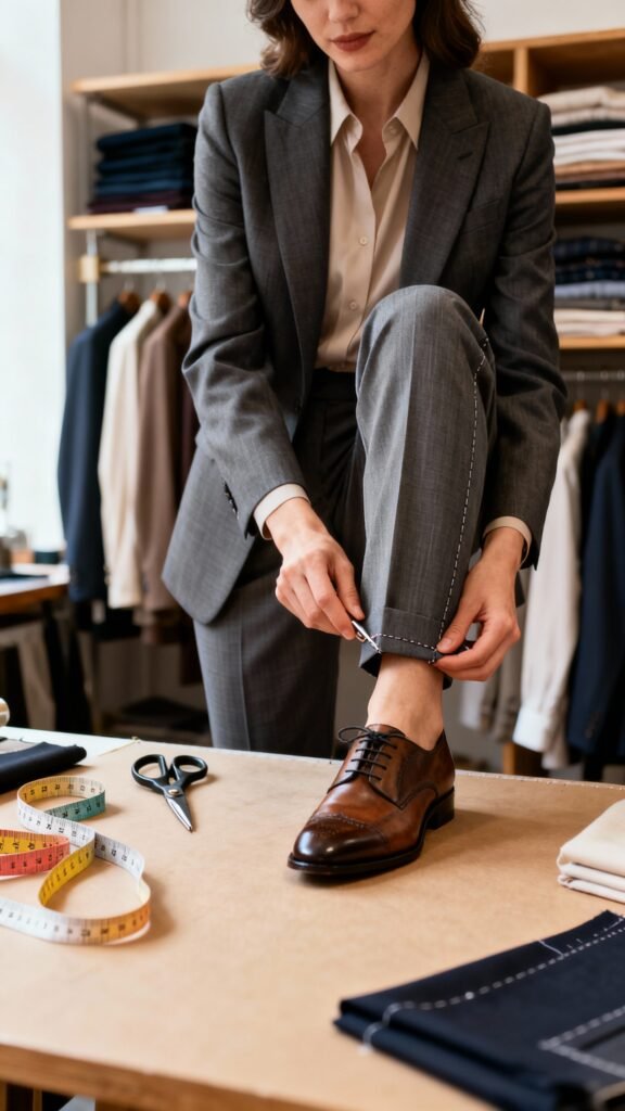 - Hem trousers just above your shoe break.It adds instant polish.