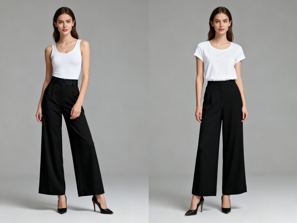 Quiet luxury isn’t about logos or flexing. It’s about pieces that whisper “I’m quality” instead of shouting “I’m expensive!” Wide-leg black pants nail that vibe because they deliver clean lines, impeccable drape, and versatility. No flash, just finesse.