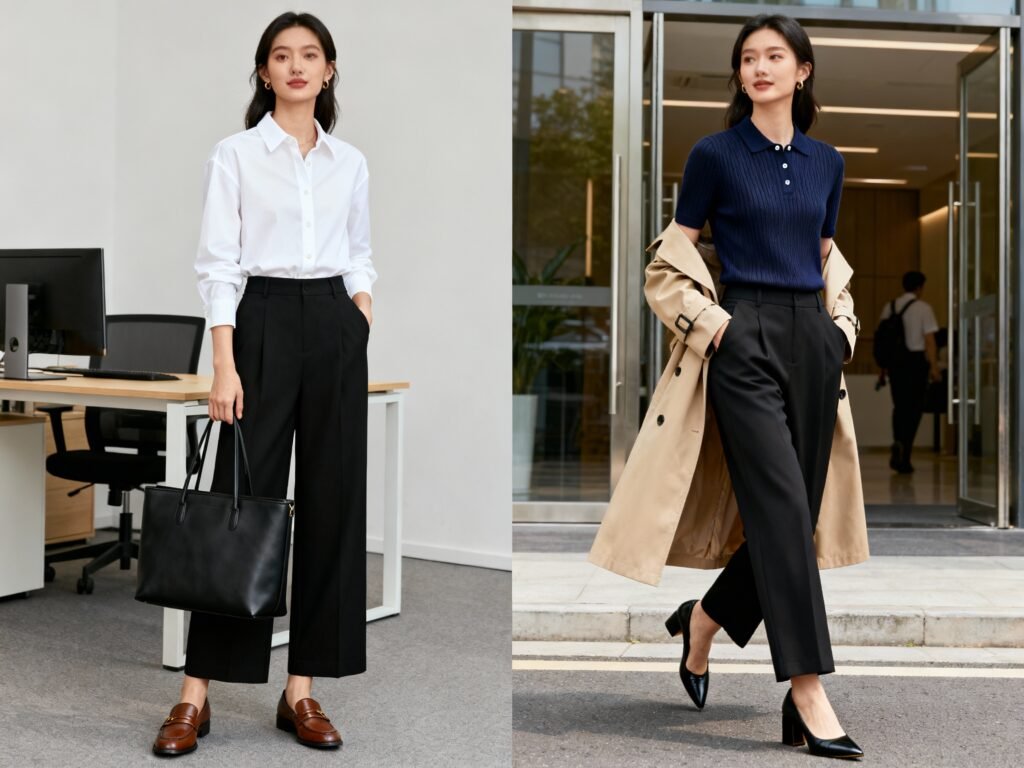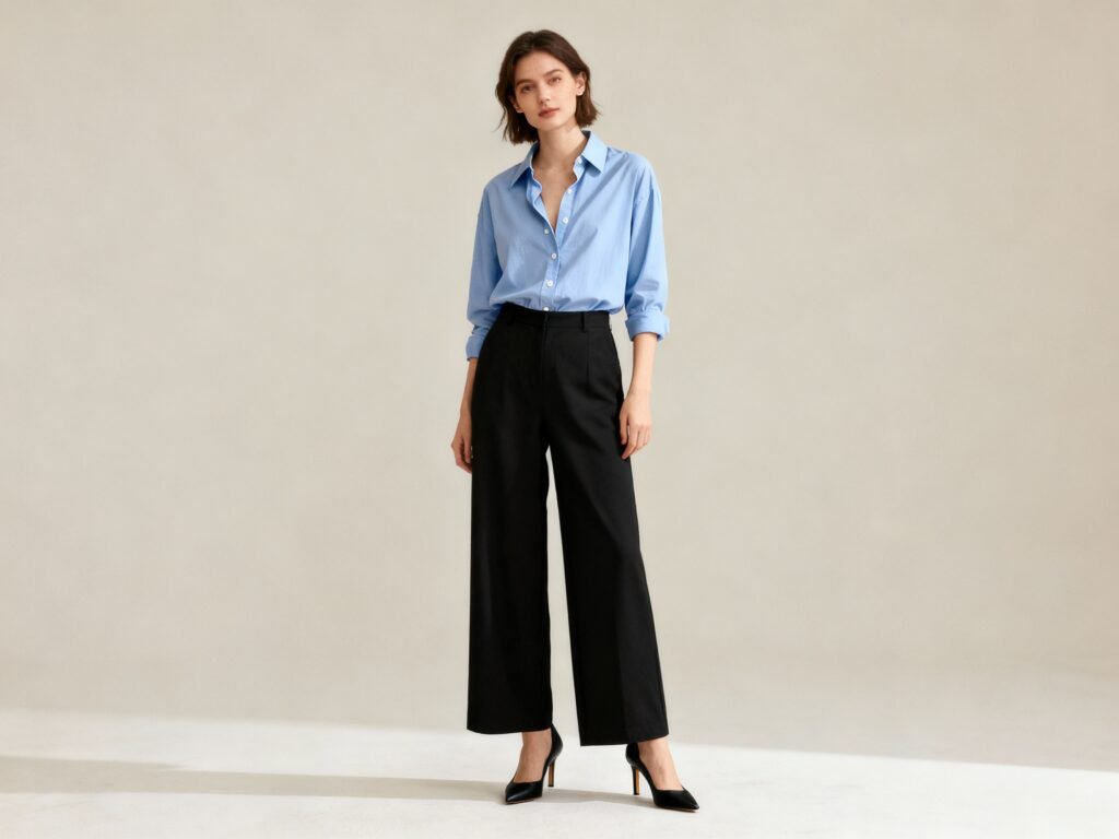 Pair with a button-down or knit top, add a blazer if needed, and you’ve got a power outfit that reads professional without stiffness. Choose a fabric with structure and minimal sheen for maximum polish.