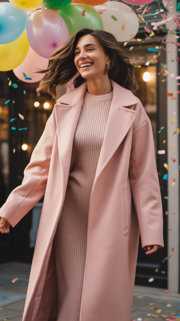 Let’s start with a winter essential: the long coat. It’s a game-changer for elegant winter birthdays. A tailored wool coat instantly elevates your outfit and keeps you warm.
