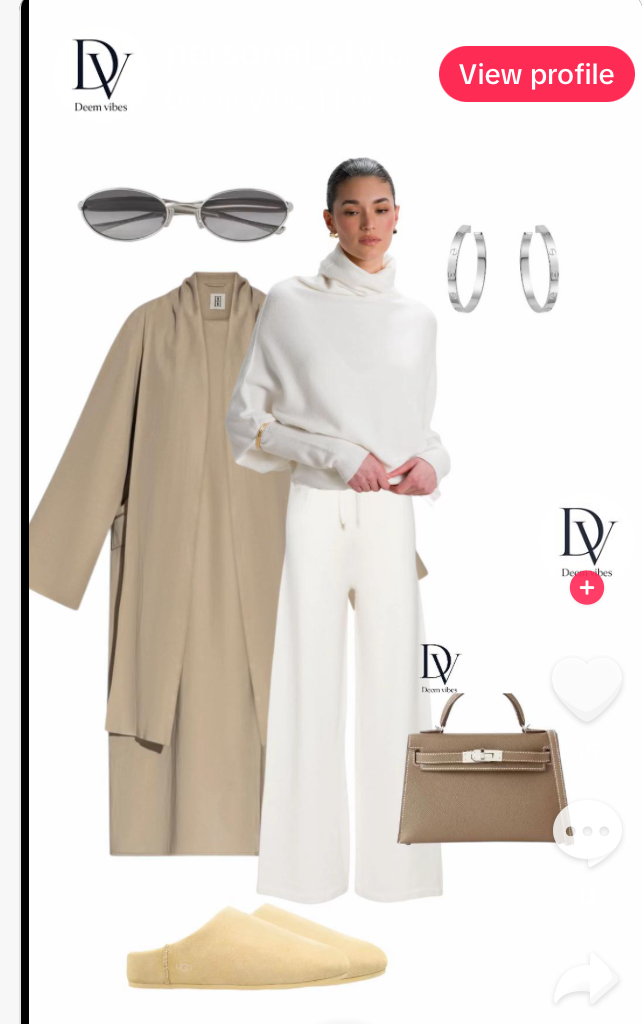 Effortless quiet-luxury vibes 🤍 This look blends timeless neutrals with refined textures — a soft cream turtleneck sweater, wide-leg ivory trousers, and a flowy camel coat that adds instant polish. Styled with silver hoops, minimalist sunglasses, and a structured taupe handbag for that old-money elegance. Slip into cozy suede mules and you’ve got a chic everyday uniform — perfect for coffee runs or city strolls. ✨