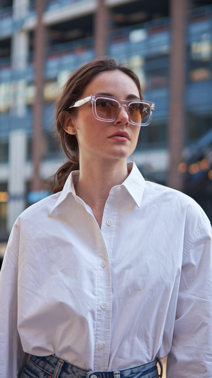 Clear or translucent frames are the unsung heroes of modern Y2K revival. They bring in the nostalgic vibe without overpowering your outfit.