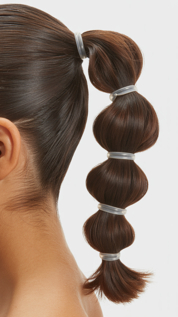 Playful, structured, and oddly humidity-resistant. The bubbles hide swelling hair.