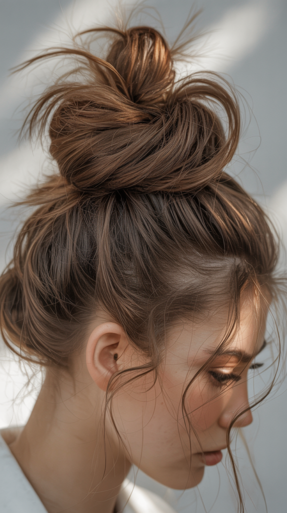 - Tease the bun slightly for volume; smooth the front with edge control.
